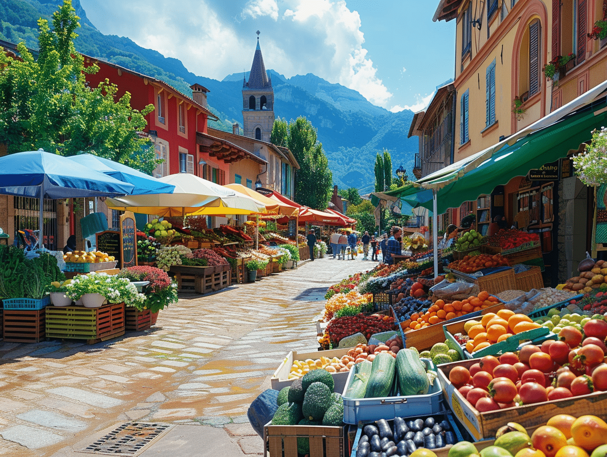 Se promener dans le marché d’Argelès-Gazost, c’est vivre une expérience sensorielle unique. Les odeurs de fromages affinés, de viandes grillées et de produits de boulangerie envahissent l’air. Les étals de fruits et légumes offrent une palette de couleurs vives, des rouges éclatants des tomates aux verts profonds des légumes de saison.