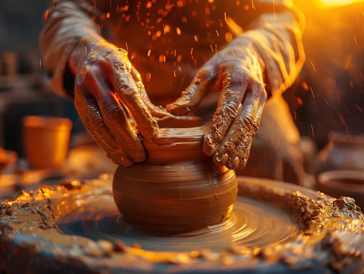 - Le tour de potier : élément central, il permet de façonner l’argile grâce à la rotation contrôlée par le potier.